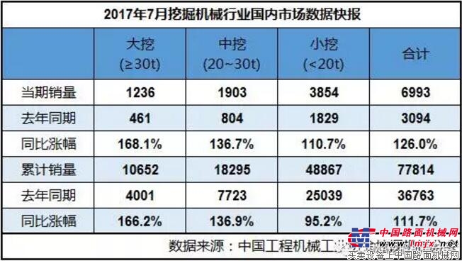 2017年7月挖掘機(jī)械銷量7656臺,同比增長108.9%